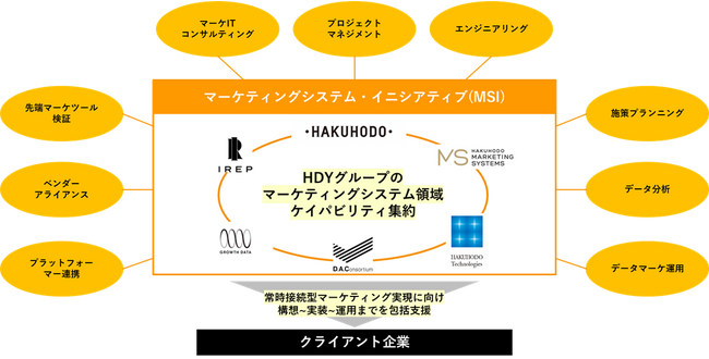 株式会社博報堂テクノロジーズ(東京都港区、代表者:米谷修、以下博報堂テクノロジーズ)を含む、マーケティングシステム領域の専門人材が集結する博報堂DYグループ6社(*)は、専門人材とナレッジを集約し、クライアント企業におけるマーケティングシステムの構想から実装・運用までワンストップでサポートする「マーケティングシステム・イニシアティブ」を発足しました。