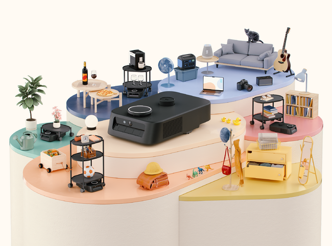 カチャカは、AI技術を搭載し、人の指示で家具を動かす家庭用自律移動ロボット。専用のキャスター付き収納「カチャカシェルフ」とドッキングすることで、指定の場所までモノを運ぶことが可能。これまで難しいとされてきた、環境変化の激しい居住空間での柔軟な自律移動を実現。「カチャカ」と「カチャカシェルフ」により、人が家具に合わせて動くのではなく、人に合わせて家具が動くというスマートファニチャーのある生活を提供します。