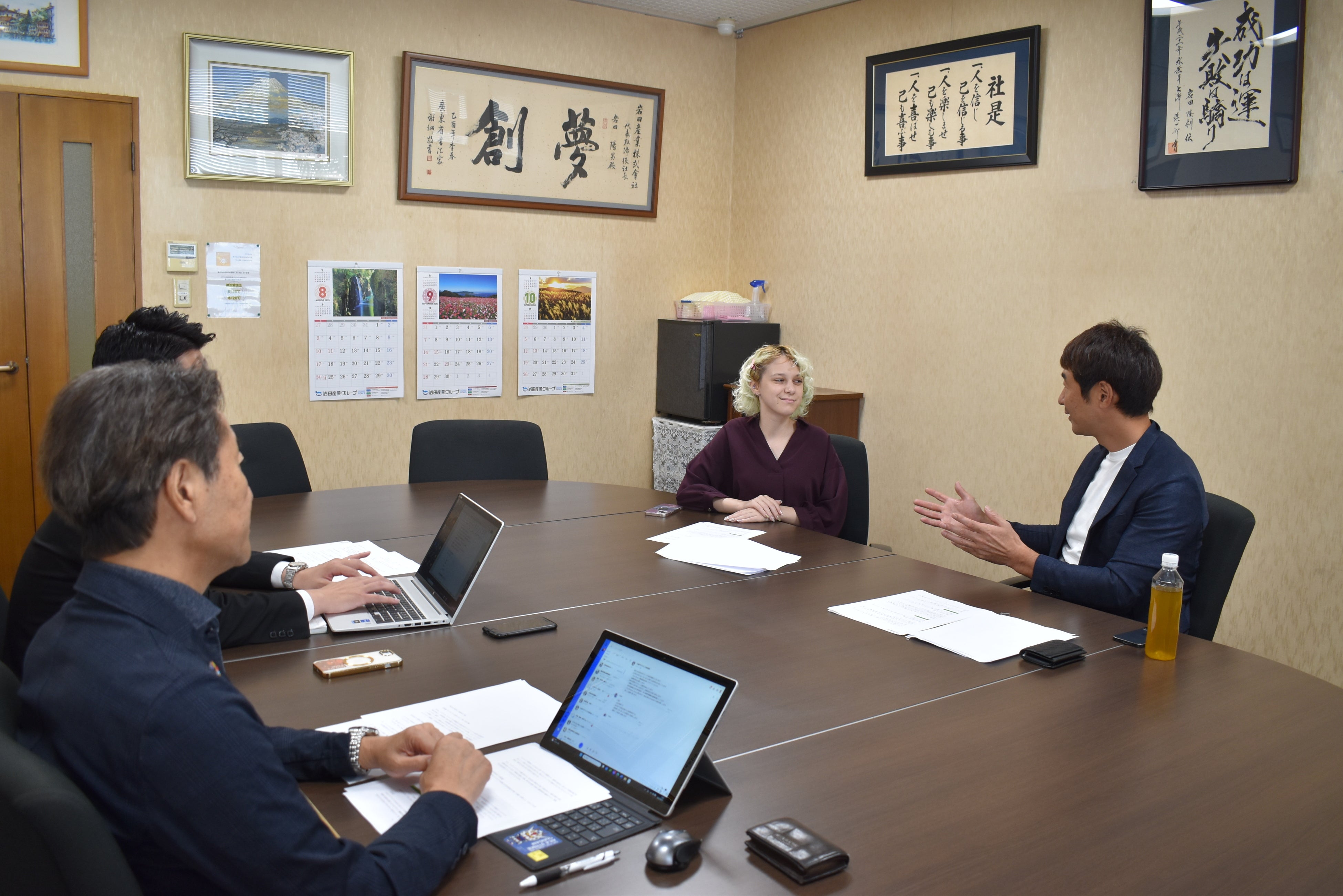 佐伯社長のクリスマスアドベントへの取り組みと、ソーニャがそこでウクライナ料理「ボルシチ」「ピリシキ(ロシア語ではピロシキ)」を販売するようになった経緯、また岩田産業の取り組みなどについてそれぞれの話をうかがった。