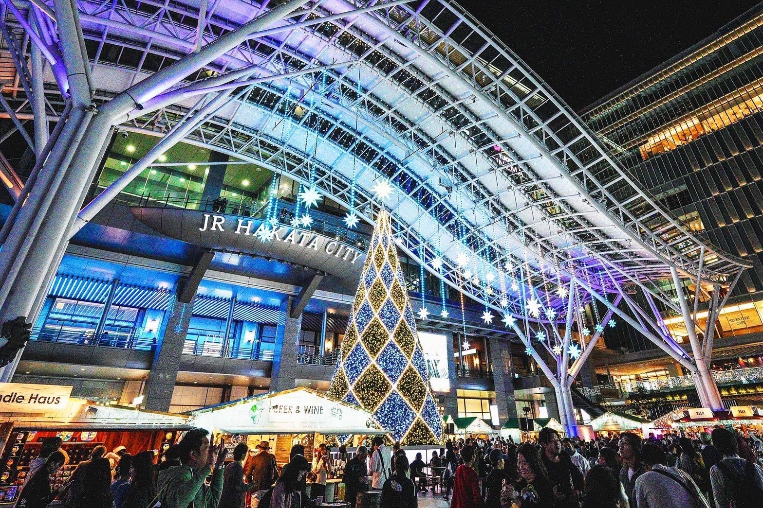 クリスマスアドベントとは: 2013年にクリスマスマーケットとして初開催。現在は名称をクリスマスアドベントに変え、光と音と芸術をテーマに福岡のまちを華やかなイルミネーションで結ぶとともに、さまざまなイベントを開催している。福岡の冬の一大イベントとして毎年多くの人でにぎわうだけでなく、上野恩賜公園・袴腰広場にて「東京クリスマスアドベント in Ueno Park」を開催。