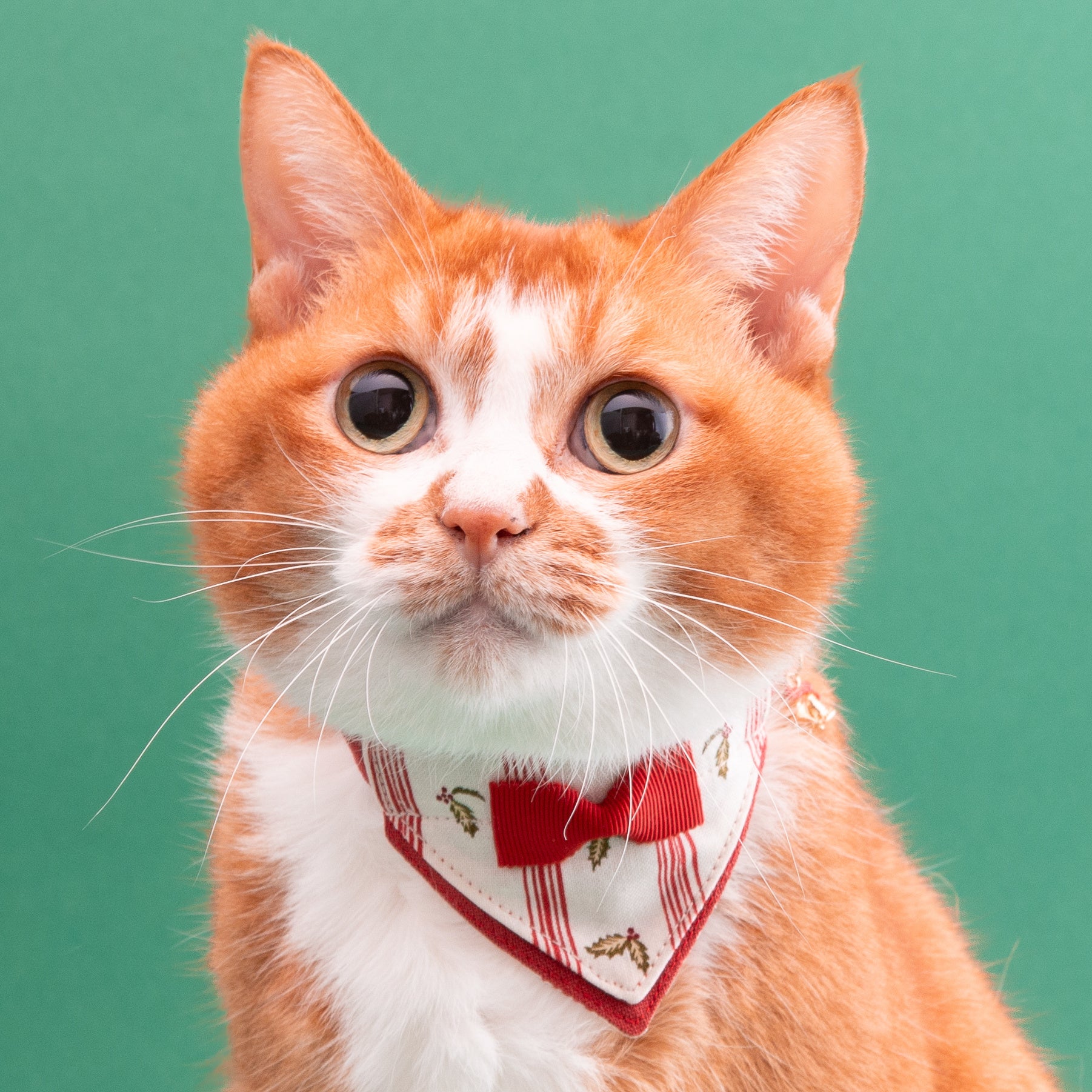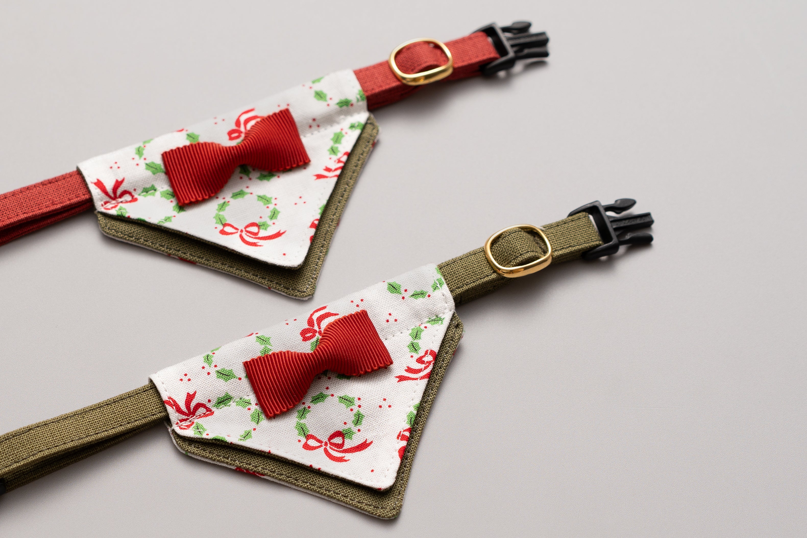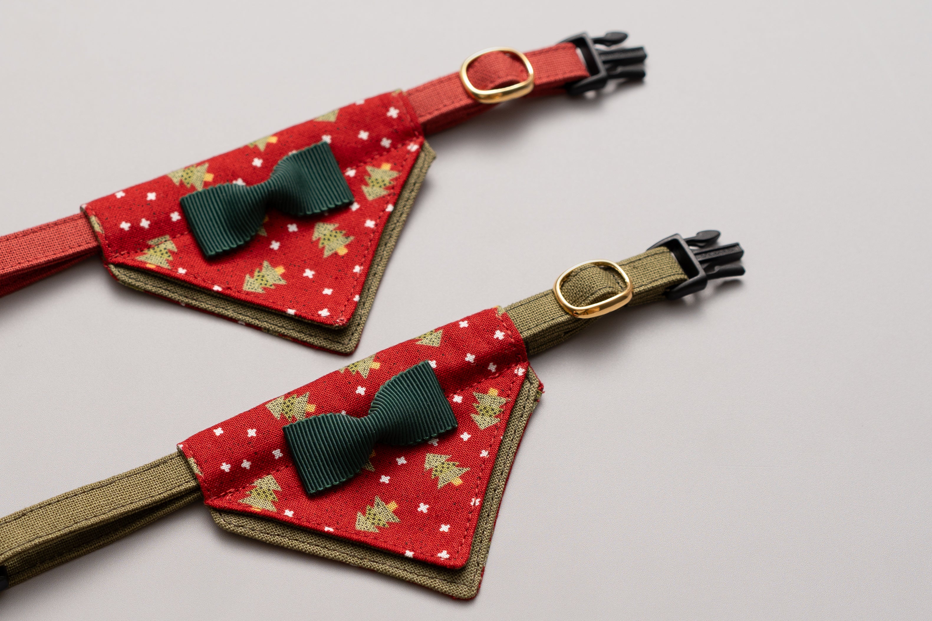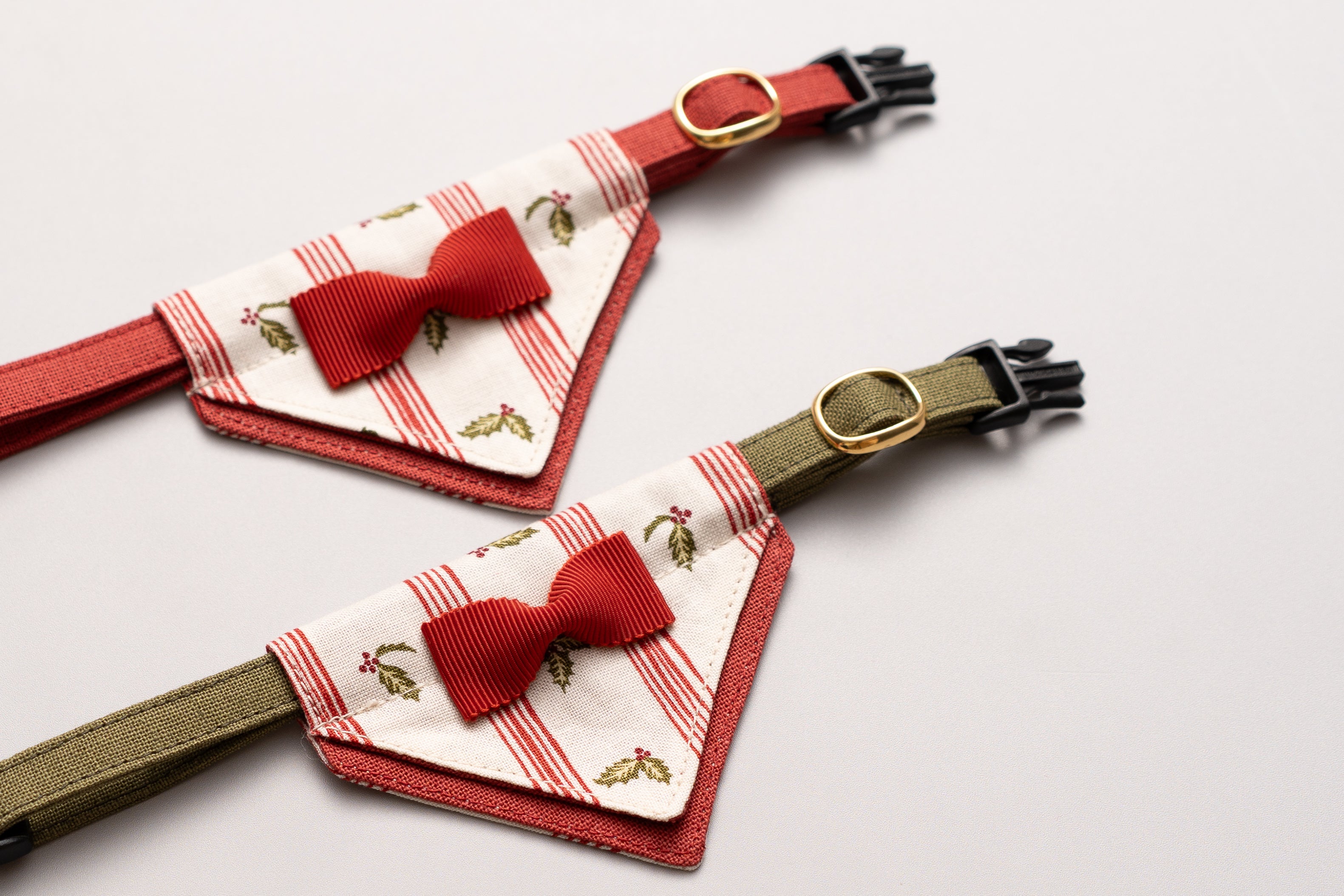 クリスマスのワンシーンにそっと寄り添う、猫にやさしい猫首輪です。