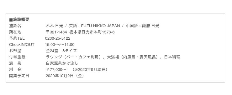 初めて開かれた聖地【ふふ日光】10月2日(金)開業日決定