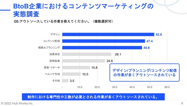 全体の約50%が「デザイン/コンテンツ配信/戦略プランニング」をアウトソースしている