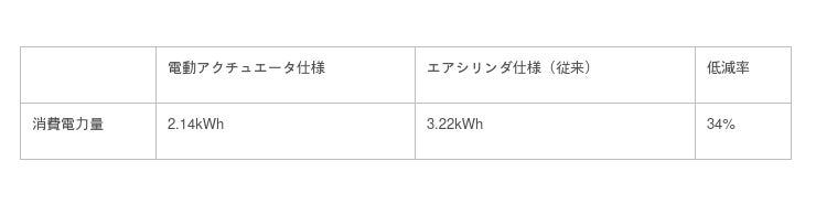 1.省エネルギー: 従来のエアシリンダ仕様に比べ、 消費電力量を34%低減*
