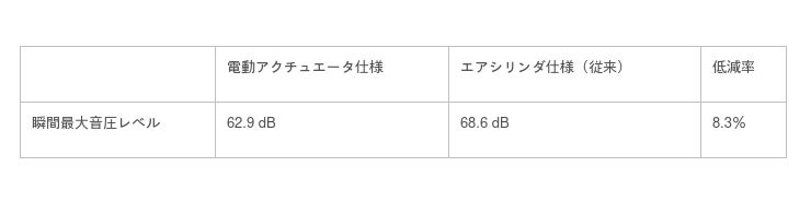 2.低騒音: 従来のエアシリンダ仕様に比べ、瞬間最大音圧レベルを8.3%低減*