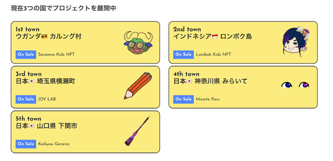 そしてこのたび、ブロックチェーン技術を活用した「NFTアート」を作成し、第1期村民には無償配布。それと同時に、村民数の合計300名という目標に向けて、6月22日よりプラットフォーム「Open Town」上での販売を開始することとしました。