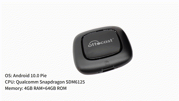 「OTTOCAST-S31」は米国クアルコム社製業界最新の8コアCPUチップ「Qualcomm Snapdragon SDM6125」を採用しております。4GBのメモリと64GBのストレージで、パネル操作がよりスムーズになり、より多くのアプリや動画をダウンロードすることが可能です。