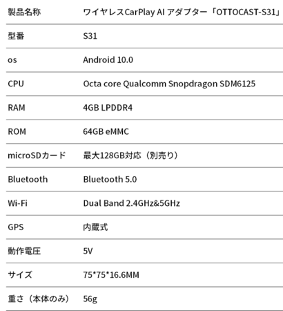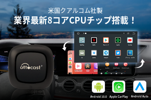「OTTOCAST-S31」はAndroid 10を搭載したCarPlayアダプターです。車のUSBポートに差し込むだけで簡単にカーナビをAndroidスマホ化!業界最高のCPUスペックが備わっております。