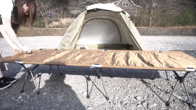 Gussuriでは「コット」として地面から直接冷気が当たらないばかりか「空気の層が断熱してくれる」ので朝急に寒くて起きるのとはもうおさらばです。