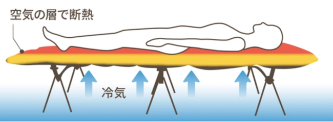 従来のエアーコットやエアーベッドでは地面に接していることで冷気が来やすいので、マット用の敷マットを使ったりホットカバーで対策をする必要がありました。