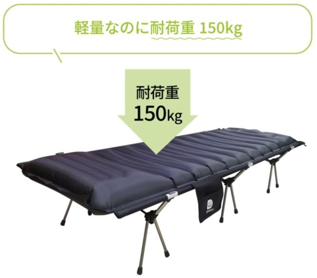 【プロジェクト開始後、わずか1分で目標達成!】Makuakeのアウトドアランキング1位! ワンタッチ60秒で膨らむエアーマットコット「Gussuri」