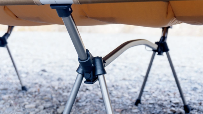 従来のコットは地面に直接触れない快適さがある反面、張り具合で寝心地が変わったり、ギシギシと軋む音で起きてしまい不満がありました。