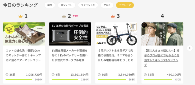 株式会社Wesma(代表取締役:鈴木 大輔)は、2023年2月22日にMakuakeにて自社ブランド「DOEARTH」のエアーマットコット「Gussuri」の先行販売を開始いたしました。開始からわずか1分で目標金額を達成し、デイリーランキングではアウトドア1位を獲得しました。(※2月23日Makuake「今日のランキング」にて)