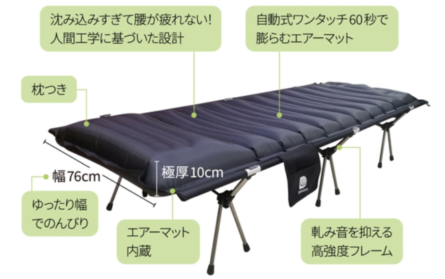 【コットの進化系!極厚10cmのマットが一体に!キャンプ泊に沼るエアーマットコット】