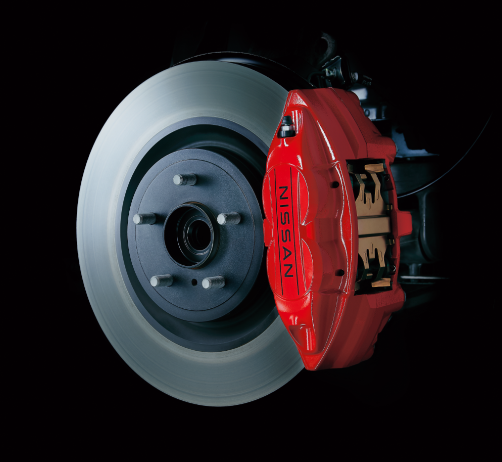 4輪アルミレッドキャリパー対向ピストンブレーキ■耐フェード性が高いパッドを採用することで高温でも安定した制動性能を実現