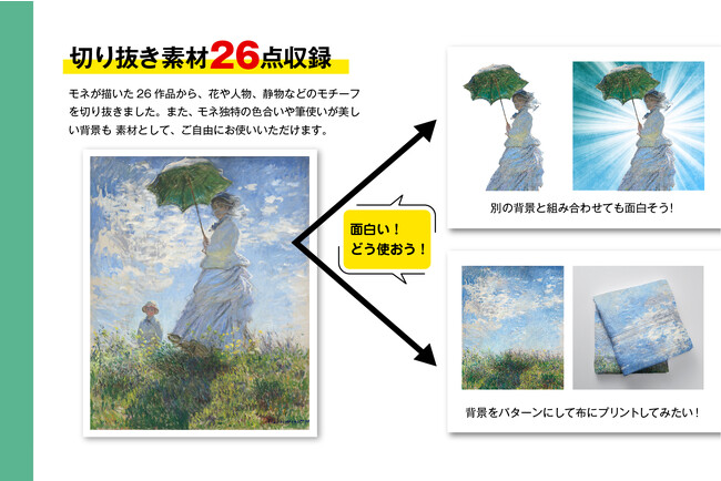 この革新的な製品は、モネの魅力を存分に味わうことができる究極の「素材集」です。