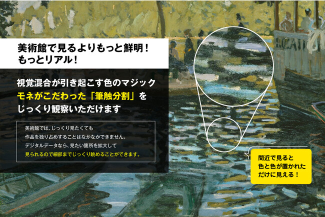 モネの作品の魅力を最大限に引き出すため、細部まで緻密に再現されたデータが数多く含まれており、そのクオリティに驚かされることでしょう。