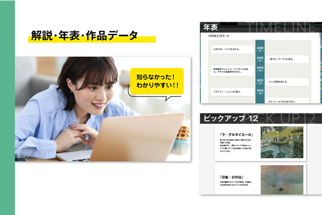 さまざまな機能が凝縮されており、モネ作品への理解を深め、創造力を刺激します。