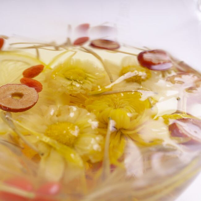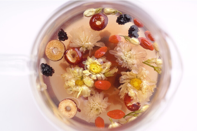 (華やかな花々とレモンの爽やかな味わいのお茶)