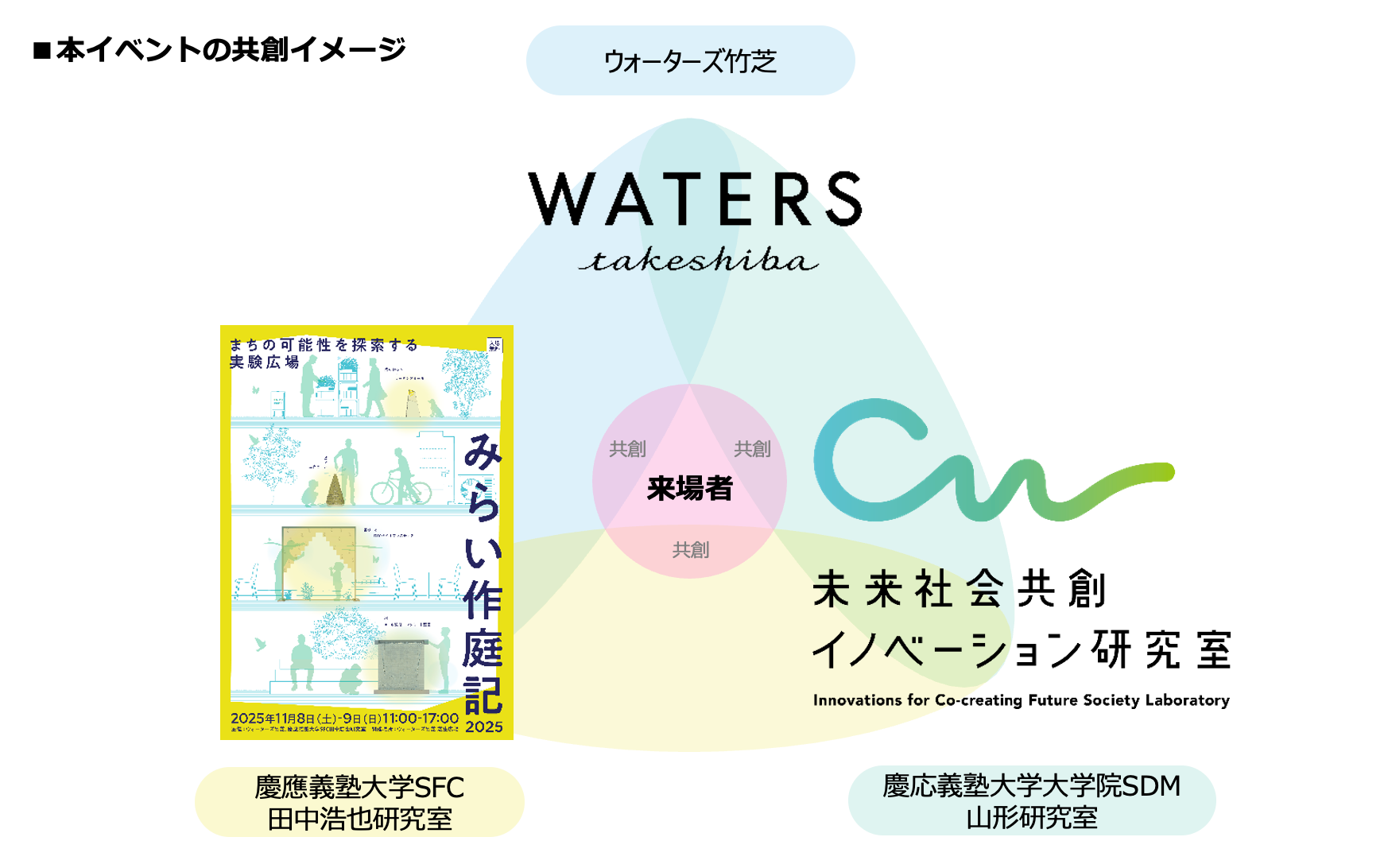 このたびウォーターズ竹芝では、2025年11月8日(土)・9日(日)の2日間、昨年に引き続き、慶應義塾大学 田中浩也 環境情報学部教授率いる「慶應義塾大学湘南藤沢キャンパス田中浩也研究室」と連携し、研究室の学生たちとともに東京の水辺空間に「未来のまち」を創る取組み「みらい作庭記2025」を開催します。