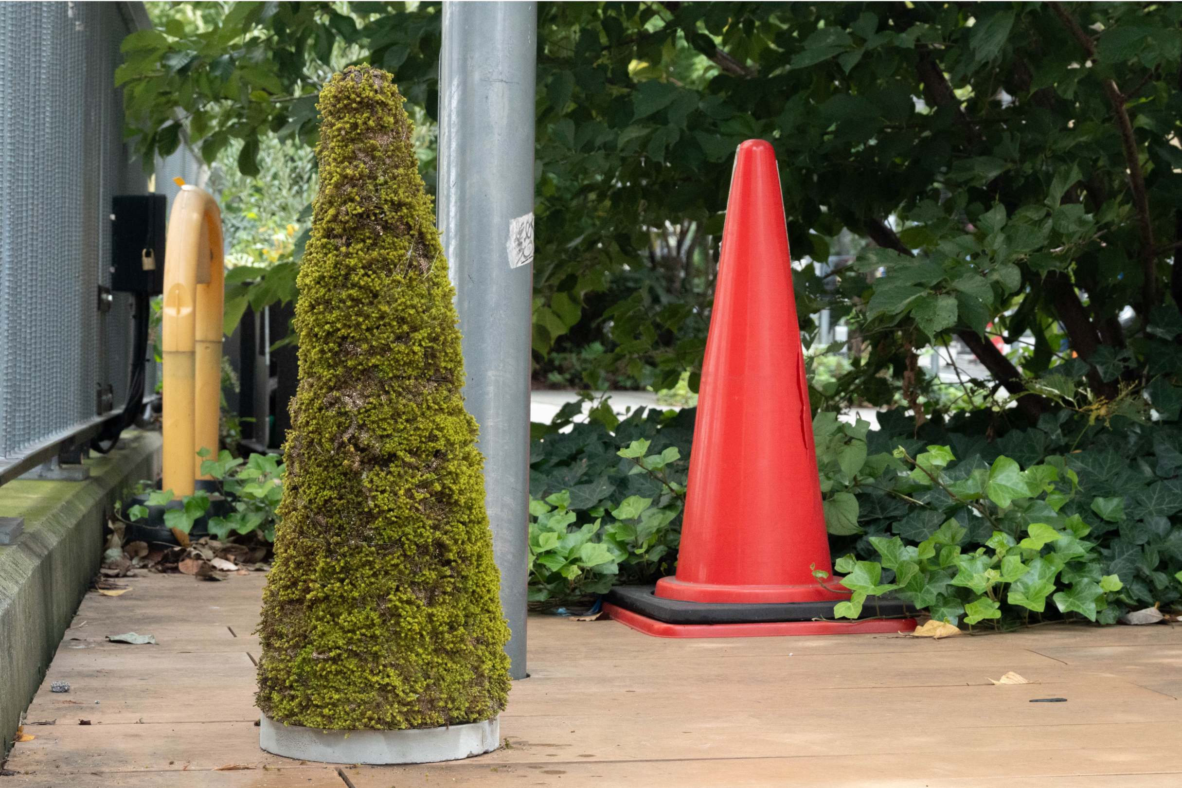 苔コーンは、都市における苔の増殖装置になり得るだろうか。異常気象によって、街路樹(都市の第一のみどり)は倒れ、プランター(都市の第二のみどり)は軒先に置くことすらできなくなった、20XX年の東京を舞台に、「苔(MOSS)」を都市の新たなグリーンインフラ=「都市の第三のみどり」として増殖させていきます。その第一弾となる増殖装置として、今回は都市において苔と生息環境が類似する三角コーンに着目し、都市に暮らす人々と共に生きる苔の可能性を模索していきます。