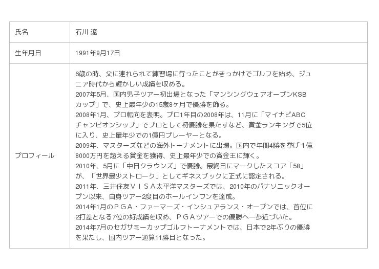 参考:石川遼選手プロフィール