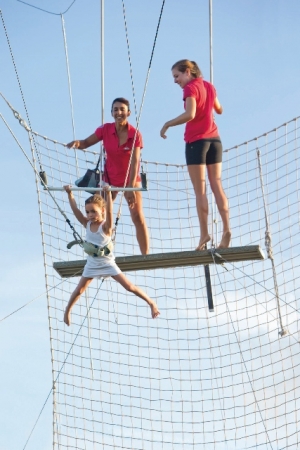 道内でここしか体験できない空中ブランコやジャグリングに挑戦。夜には華麗なサーカスショーも。