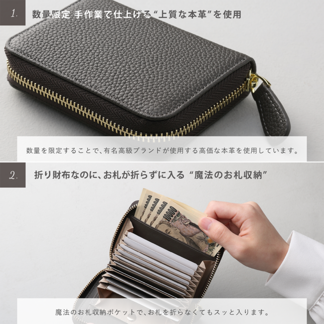折り財布なのにお札が折らずに入る!?レシートと小銭が自然に分かれる!?大容量・ギャルソンタイプの"魔法の財布"が新登場!