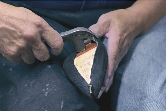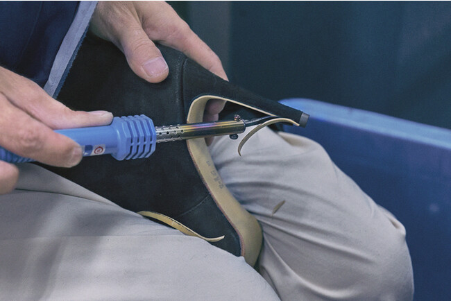 日本国内で実際にロングブーツを制作する様々な工程をご紹介しております。全ての工程において、特殊な機械・器具を使用し、多くの「職人の手」によって一足が出来上がっていることがお分かりいただけるかと思います。
