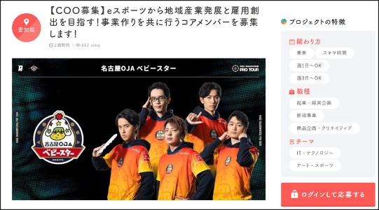 eスポーツチーム「名古屋OJA」(ナゴヤ オウジャ)の運営会社である名古屋王者株式会社では、中小企業300社に600人の副業人材をマッチングしてきたふるさと兼業を活用し人員募集を開始します。