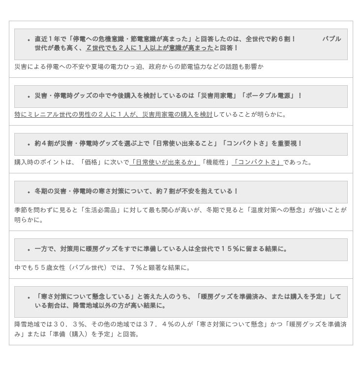 災害による停電への不安や夏場の電力ひっ迫、政府からの節電協力などの話題も影響か