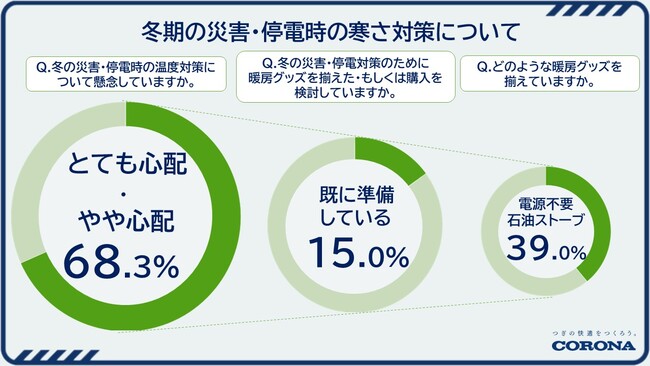 特に“冬時期の災害・停電時の寒さ対策”については、全世代の約7割が不安を抱える