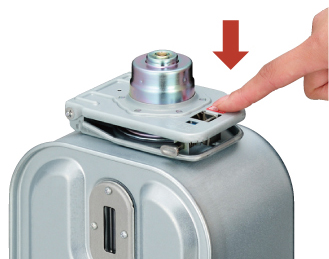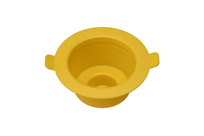 運搬時に本体内部のオイルフィルターが破損することを防ぐための固定タンクキャップ(黄色)と