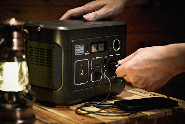 家庭用コンセント(電源100V)での使用も可能ですが、点火時消費電力を従来機種の650Wから166Wまで下げることで、定格出力200W以上の低出力のポータブル電源※1でも使用できるように設計しました。