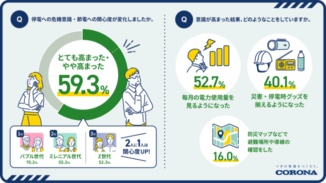 〜9月1日は防災の日!『各世代の災害・停電時の対策に関する調査2022』〜 全世代の約6割が直近1年で「停電への危機・節電意識が高まった」と回答!