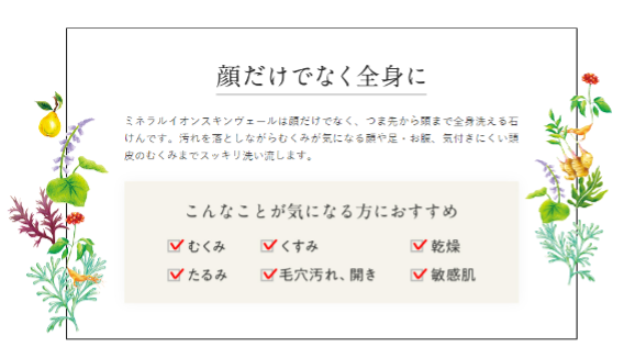 ミネラルイオンスキンヴェールは洗顔石鹸として注目を集めていますが、洗顔だけでなく全身ケアもできる優れものです。なぜ全身ケアにも使えるのか、経済的に負担にならないのかなど気になるところです。