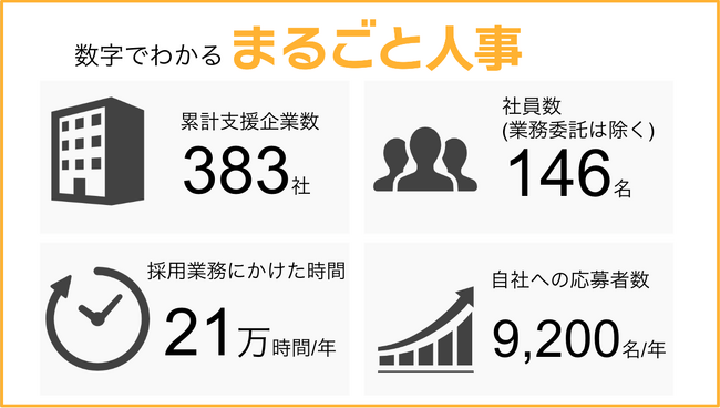 そこで「まるごと人事」では、採用ターゲットの選定、募集文の制作、スカウト代行、数値管理などの面接以外の採用業務を全て代行し、担当者の稼働時間を抑えて良い人材を採用できるよう支援しています。