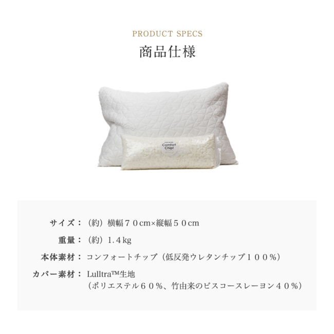 『MyComfort(マイコンフォート)』シリーズから、高さを自由に調節できる「コンフォートチップピロー〜オリジナル〜」 が先行販売開始!