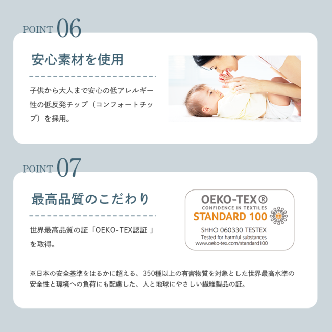 コンフォートチップはMyComfortが独自に生み出した素材で、ウレタンの反発具合、羽毛/羽根のふかふかさ、そば殻の硬さ、パイプ枕・高反発ファイバーの通気性と硬さ、全てを網羅した最高峰の素材だ。