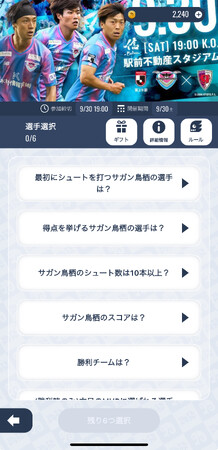 勝敗や得点選手、サガン鳥栖のスコアなど試合全体を対象とした予想と、後半得点選手や後半最初にシュートを打つ選手など、後半のみを対象とした予想の2種類を実施します。試合全体の予想は、スタジアムでの観戦可否に関わらず「なんドラ」をDLし、会員登録されている方はどなたでも参加可能です。後半予想はスタジアム来場者のみが参加可能です。