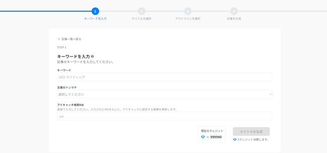 記事のキーワードやトンマナ等を入力します。 2.タイトルを選択