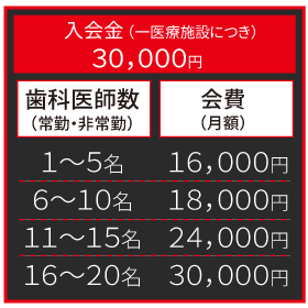 ・会費(月額)は医療施設単位の歯科医師数で決定しており、 歯科衛生士等のスタッフ数は問いません。