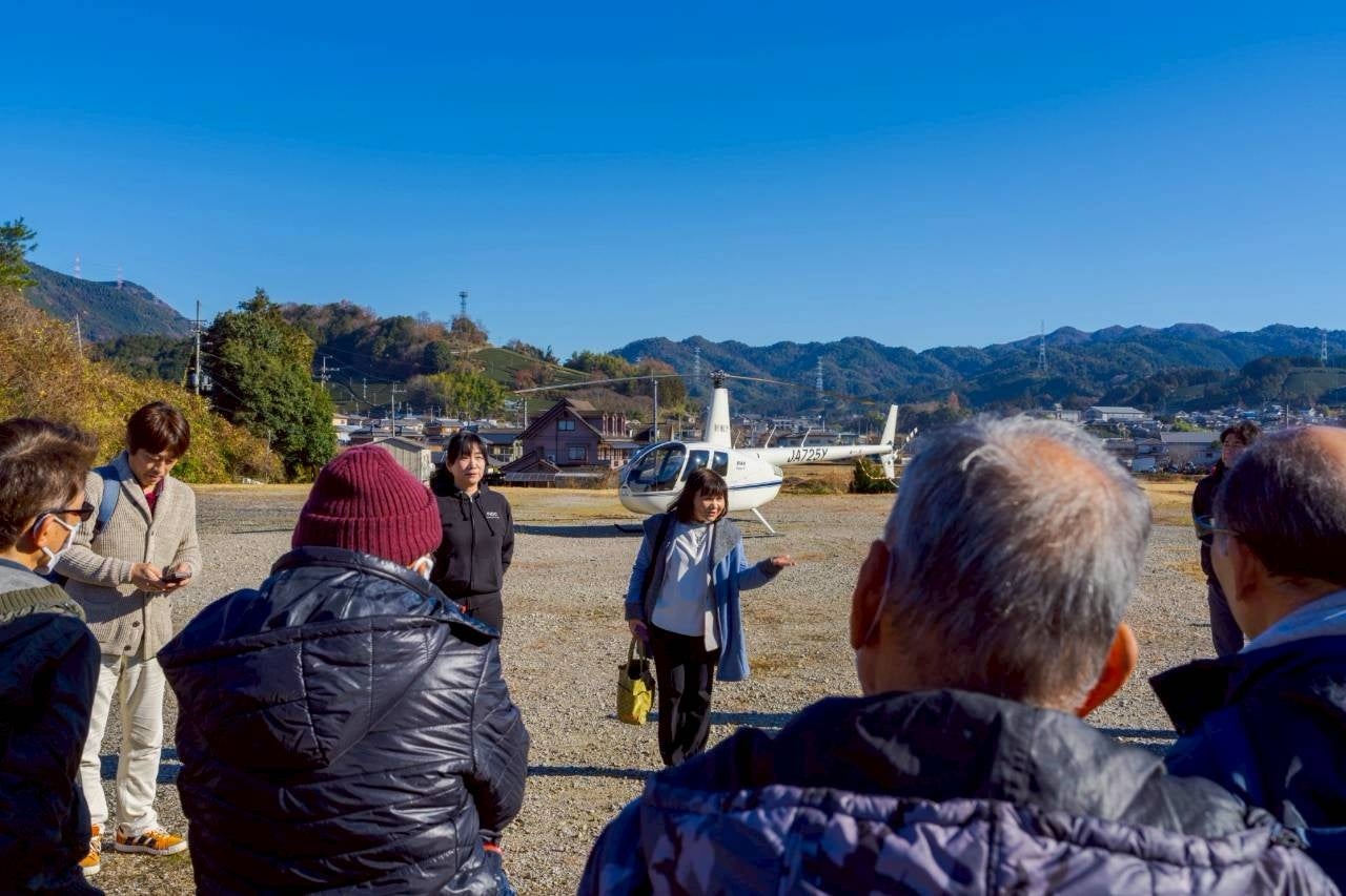 実証実験:ヘリコプター搭乗体験京都和束町の場外離発着場で、ヘリコプターの活用方法、場外離発着場の運用方法、
