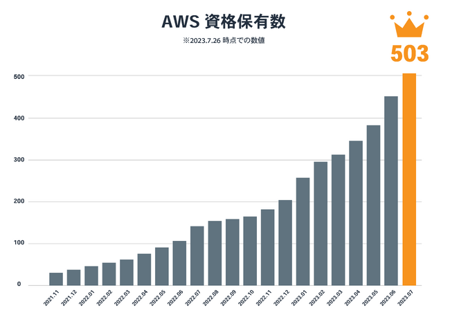 技術強化領域としてAWSにフォーカスし、認定資格取得数増加へ向けた施策を始めたのは、2021年の11月。