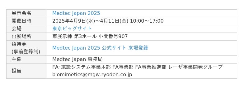RYODEN、「Medtec Japan 2025」に 出展