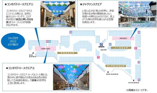 今年で4回目となるジャズカサは、館内(ジャクソンスクエア、コンサバトリースクエア)において、海の美しさを演出したエリアに加え、海の生き物をAR(拡張現実)で表現し、海にいるかのような体験を通し、来館者の方々へ「ワクワク」を提供します。