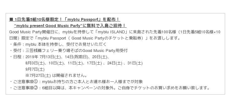 ・イベント名:myblu presents Good Music Party in Sarushima -10 Summer Days-