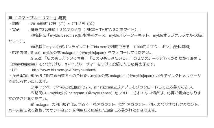 〜2019年7月13日(土)〜9月7日(土)までの期間限定〜 8/11「myblu Party」、Instagramキャンペーン「#マイブルーサマー」も開催!