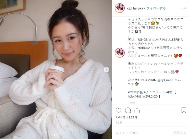 オフを取得した1人目のCJDメンバー、HARUKAさんのInstagram :