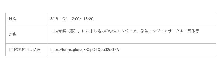 エンジニア学生が自分たちの活動をPRできるLTを実施